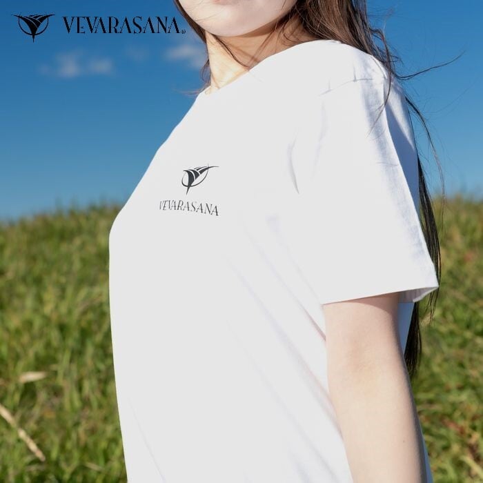 胸にワンポイントのVEVARASANAがデザインされて